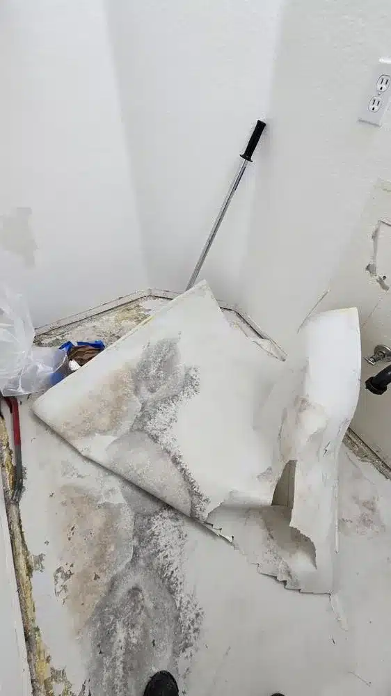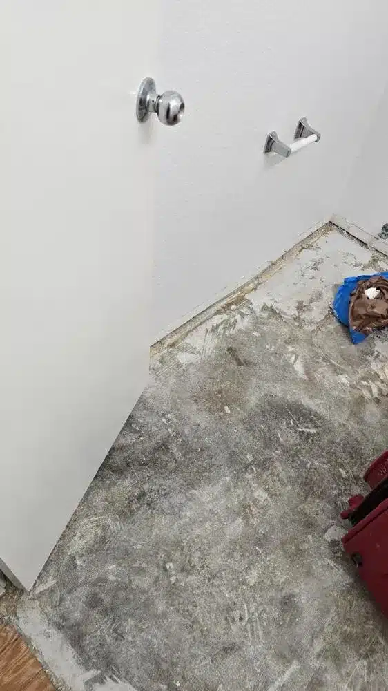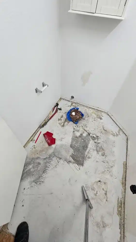 White Glove Restoration was called to a home in Oceanside, CA, when water damage was suspected in a bathroom area where the toilet was located. Upon inspection, we determined that moisture had affected the bathroom floor and that immediate remediation was required. To address the issue properly, our team removed the flooring to assess the extent of the damage underneath.
