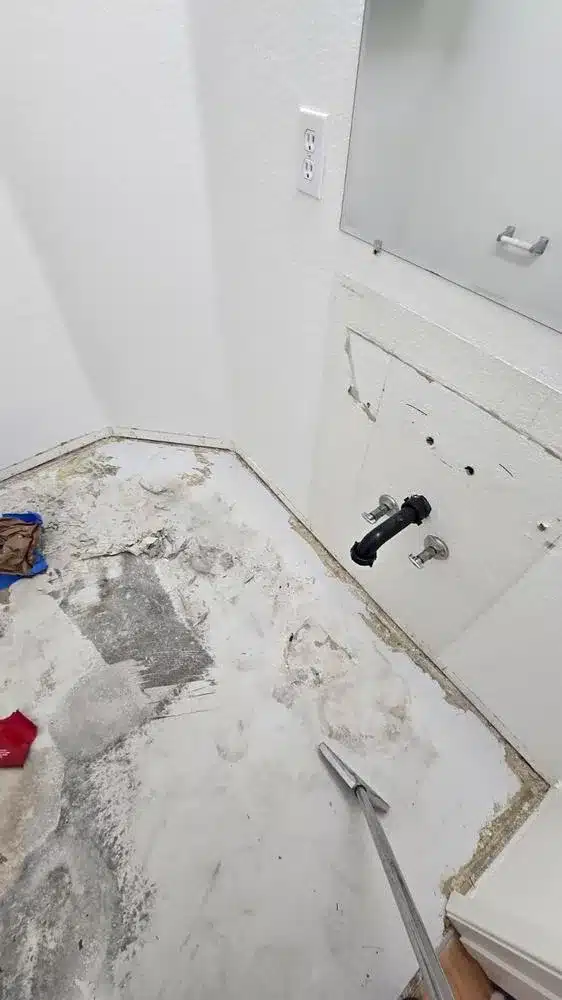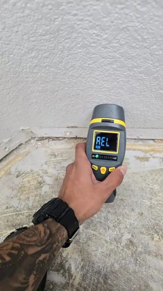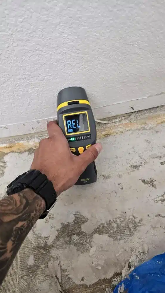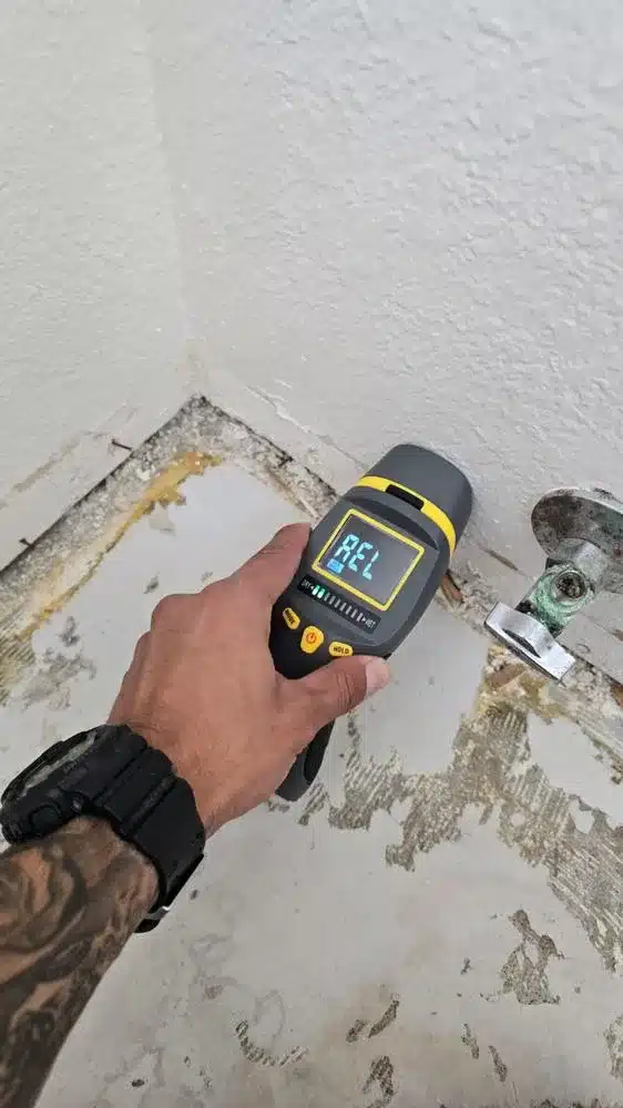 Using advanced moisture meters, we confirmed that the surrounding walls were unaffected, pinpointing the floor as the source of the problem. This allowed us to focus our remediation efforts where they were needed, avoiding unnecessary demolition and keeping the process efficient and cost-effective. Accurate moisture detection ensures we solve the right problem and prevent mold or structural issues down the line.