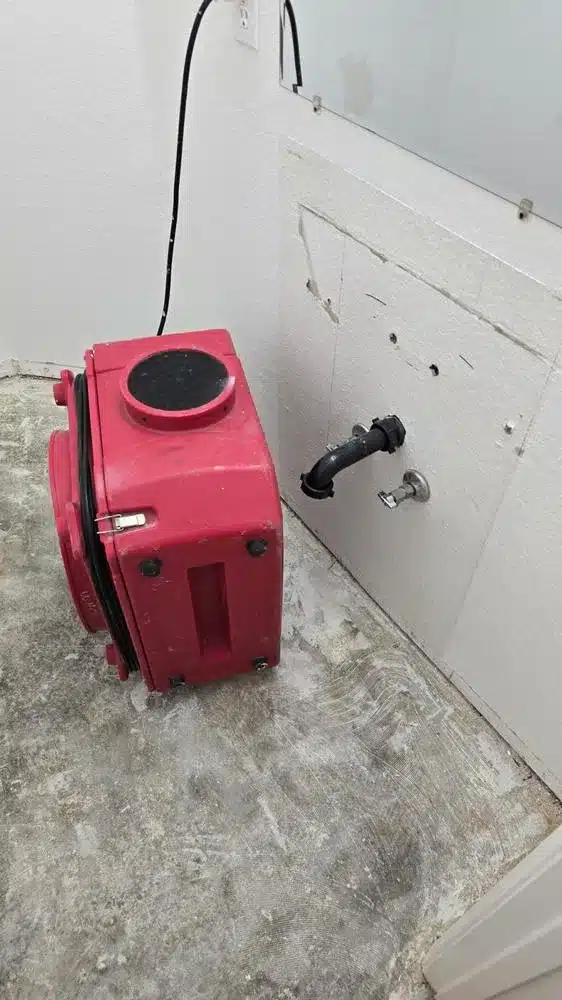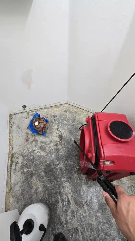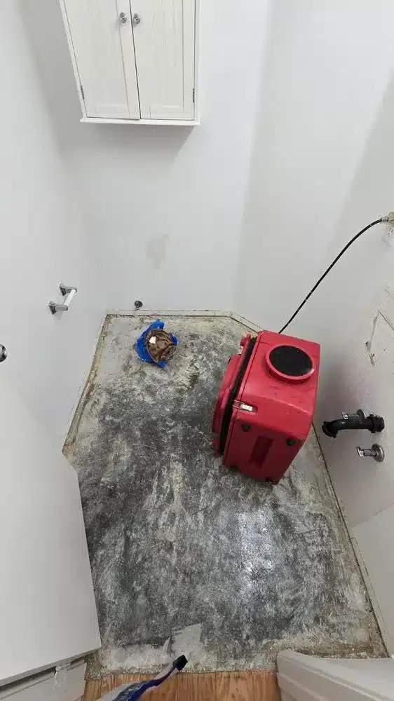 After removing the damaged flooring, we used high-powered drying equipment to eliminate all remaining moisture from the floor. Proper drying is key to preventing future mold growth, rot, and further deterioration of the bathroom’s structure. With the area now dry and safe, the homeowner can move forward confidently with floor repairs or upgrades, knowing the underlying issue has been handled professionally.