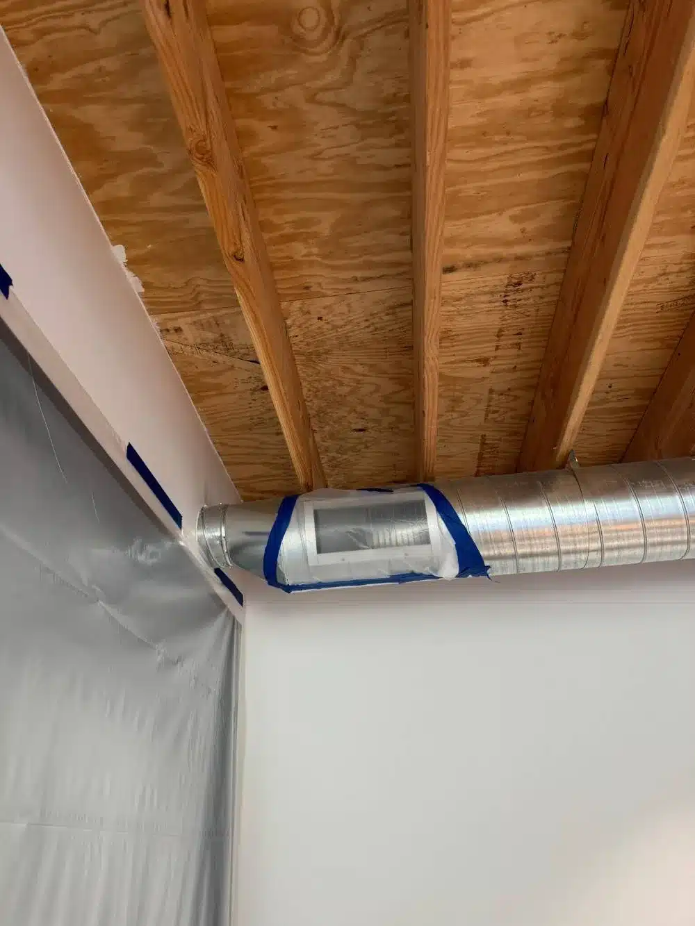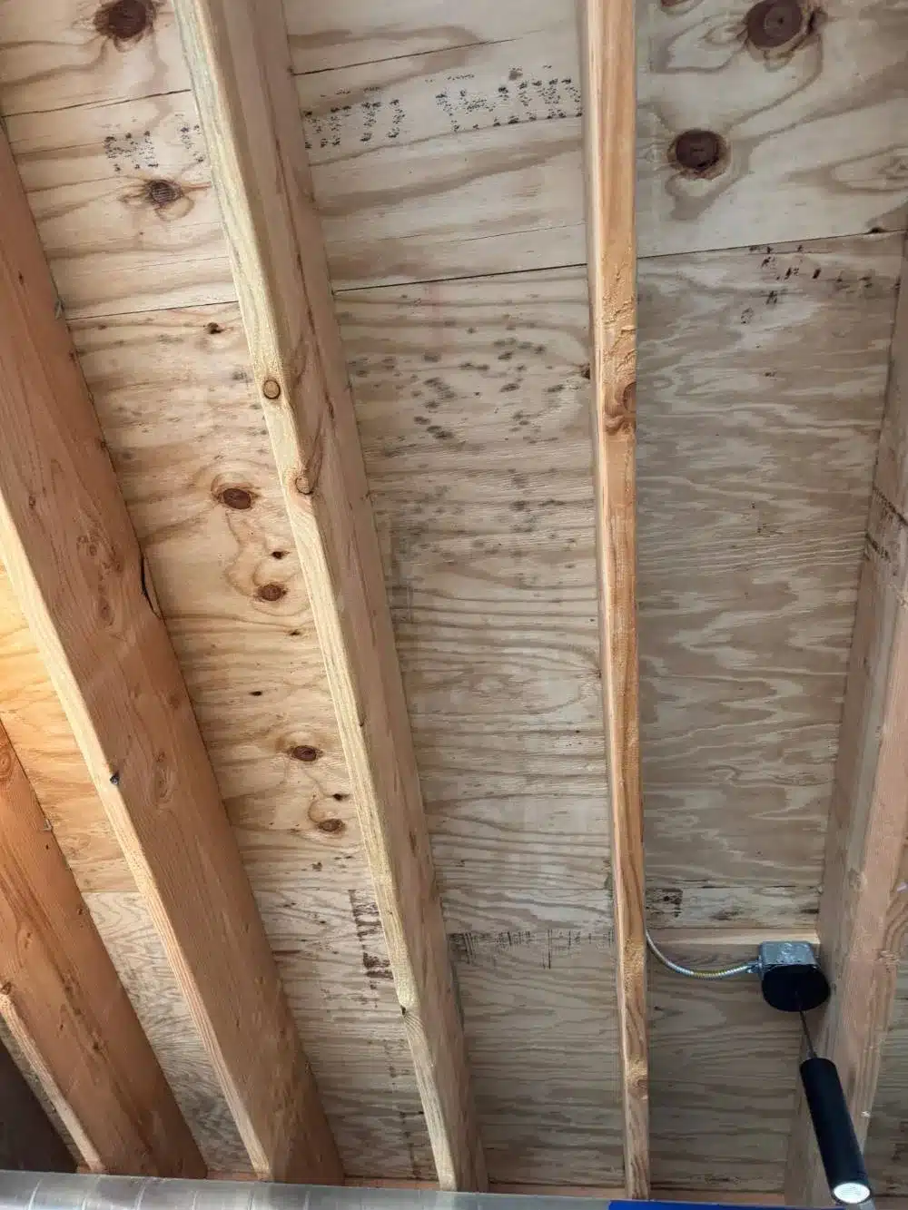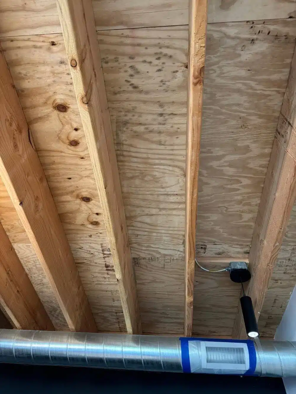 Once the containment zone was established, we carefully removed all mold-affected materials, such as ceiling tiles and insulation. Each item was handled with care and disposed of in accordance with strict safety and environmental guidelines. After removal, we treated all exposed surfaces with EPA-approved antimicrobial cleaners to eliminate any remaining mold spores. Our process prioritizes safety, cleanliness, and thoroughness, ensuring that the mold was completely eradicated from the ceiling cavity.