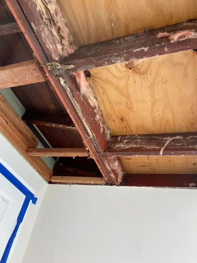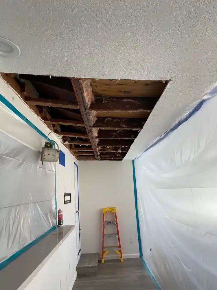 Once the area was fully contained and protected, our team accessed the ceiling and removed the mold. This process involved safely cutting into the impacted ceiling materials, removing all mold-contaminated components, and thoroughly cleaning the area. Every step was performed using industry-standard protocols to ensure the home’s and its occupants’ safety.