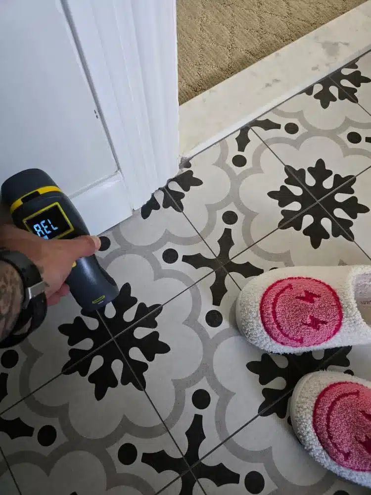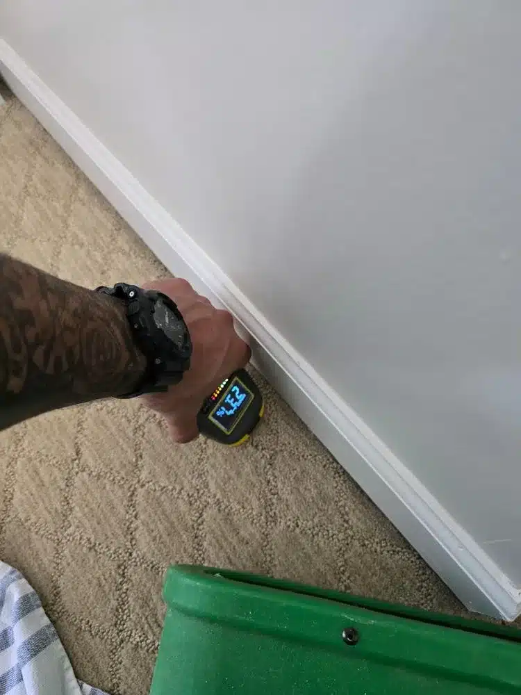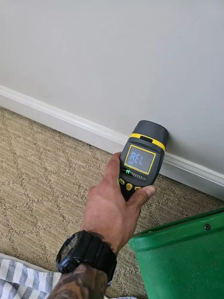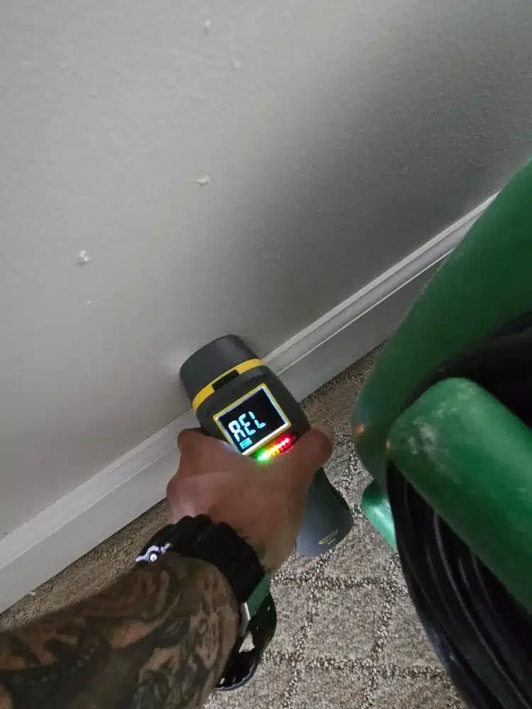 If left untreated, moisture trapped in walls and flooring can lead to serious problems. It creates the perfect environment for mold and mildew growth, weakens the structural integrity of materials, and can cause unpleasant odors or unsightly stains. Using our state-of-the-art moisture meters, we identified these problematic areas with precision. The meters’ color-coded display and REL mode helped us pinpoint the areas with the highest levels of moisture, ensuring our efforts were focused where they were needed most.